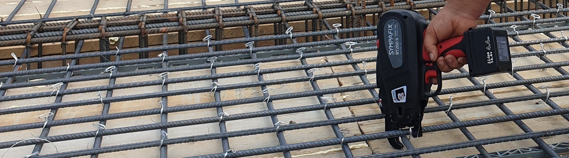 Im Stahlbetonbau werden Bewehrungsmatten, Bewehrungkörbe, Bewehrungseisen mit sogenannten Rödeldraht verbunden, um eine sichere Lage der Bewehrung vor dem Einfüllen von Beton zu garantieren. Hierzu wird der Rödeldraht, Bindedraht von einer Rolle in der Akku-Drahtbindemaschine verarbeitet. Die Akku-Drahtbindemaschine wirft den Bindedraht, Rödeldraht um den Bewehrungkreuzpunkt und verdrillt den Bindedraht und schneidet diese automatisch ab. Dieser Vorgang durch den Drillapparat wird auch Rödeln, Stahl- bzw. Eisenflechten genannt.