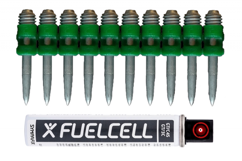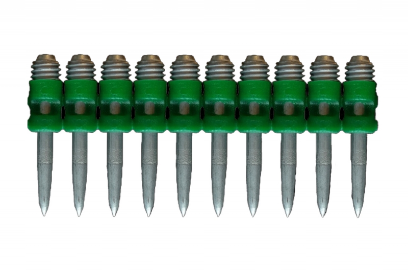 Nagel mit Gewindebolzen M6 Schaft Ø3,0mm thermisch gehärtet verzinkt konische Spitze magaziniert, 17-22mm zum Befestigen mit Nagelgeräten auf Stahl